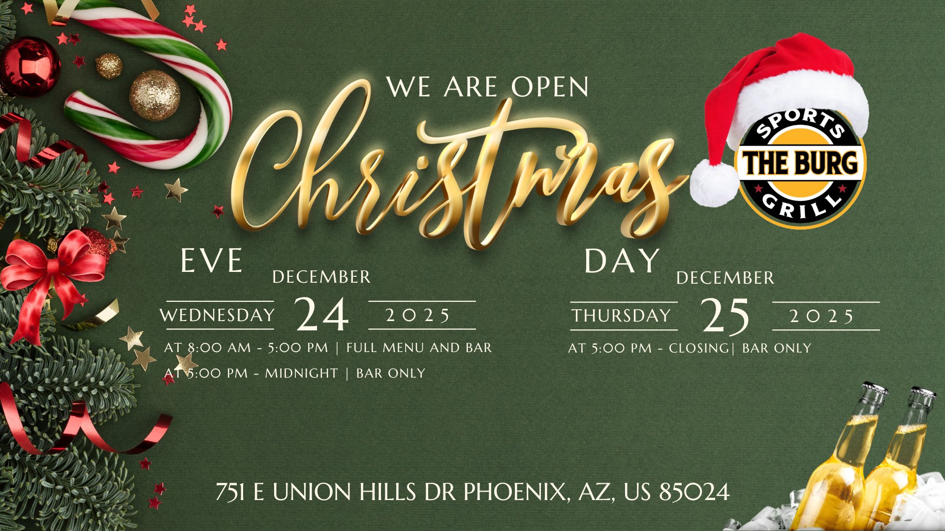 We moved to PHX recently and like the Burg Sports Grill. It’s a nice little local watering hole with pretty good food and service.